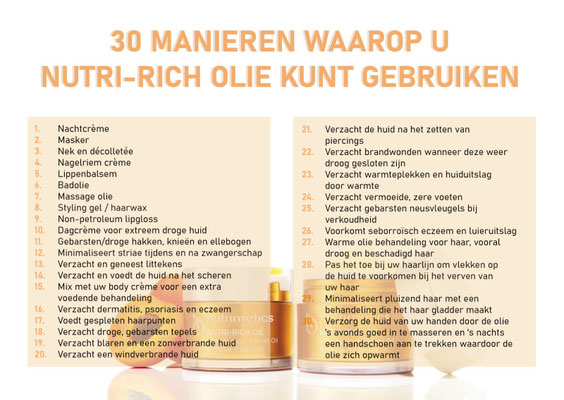 Laat de magie werken, laat de olie intrekken, het liefst 's nachts, zodat de voedende krachten hun werk kunnen doen terwijl jij droomt van groene weiden en abrikozenfeeën.